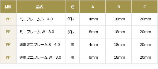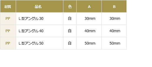 プラスチックダンボールを組み立てる部材として必要なPP (ポリプロピレン製)フレーム、及びアルミフレーム。 プラダンケースのゆがみを防止し強度を高めます。PPフレームは導電タイプもあります。 ※プラダン用フレーム・L型アングルは、お客様のご要望に応じてカットいたしますので必要なサイズをお申し付けください。 また、プラダンケース完成品の販売も行っております。詳しくは弊社までお問い合わせください。 取手S/W 貫通穴かんばん差し 材質 品名 色 PP 取手S 貫通 白 PP 取手W 貫通 白 PP かんばん差し 白